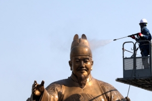 묵은 때 벗는 세종대왕 동상