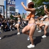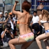 18일(현지시간) 일본 도쿄의 신주쿠역 앞 광장에서 비키니를 입은 여성들이 춤을 추며 플래시몹 이벤트를 하고 있다.이 행사는 일본 수영복…