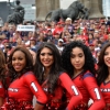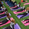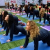 20일(현지시간) NFL 휴스턴 텍슨스의 치어리더들이 멕시코의 멕시코시티 천사의 탑 아래서 요가수업을 하고 있다.NFL은 히스패닉 팬들을…