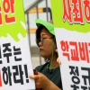 12일 오전 강원 춘천시 퇴계동 국민의당 강원도당 앞에서 열린 ‘이언주 의원 사퇴 촉구 기자회견’에 참석한 강원학교비정규직연대회의 회원들…