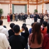 20일 청와대 본관 인왕실에서 문재인 대통령 부인 김정숙 여사가 서광지역아동센터 아동을 초대해 격려하는 중 아동센터 중학생 조가영 학생에…