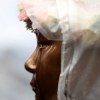 4일 밤 10시쯤 택시로 현장 도착…소녀상 어루만지다 떠나경남도교육청 제2청사 앞에 설치된 인권·평화 조형물 ‘기억과 소망’ 소녀상에 색색…