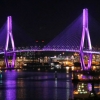 13일 오후 부산의 랜드마크인 부산항대교가 방탄소년단을 상징하는 보라색으로 물들고 있다. 지난달 BTS의 미국 뉴욕 방문 때 랜드마크인 엠…