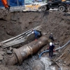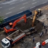 14일 오전 경기 안양시 동안구 인덕원역 사거리 광역 상수관 파열 현장에서 관계자들이 긴급 복구 작업을 벌이고 있다. 전날 밤 발생한 이 …