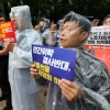 [포토] 비 맞으며…‘9호선 파업 출정식’