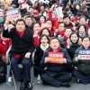 자유한국당 황교안 대표가 3일 오후 서울 종로구 세종문화회관 앞에서 열린 ‘희망 대한민국 만들기 국민대회’에서 한 집회 참가자와 맞절하고…