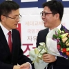 자유한국당 황교안 대표가 8일 국회 의원회관에서 제21대 총선을 앞두고 영입한 탈북민 출신 인권운동가 지성호씨, 체육계 미투 1호인 김은희…