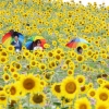 장마가 소강상태를 보인 28일 오후 경기도 안성팜랜드를 찾은 시민들이 활짝 핀 해바라기를 감상하고 있다. 연합뉴스