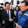 [포토] 서로 감귤 먹여주는 정청래·김부겸