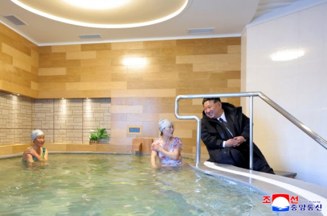 北 온포근로자휴양소 시설 돌아보는 김정은