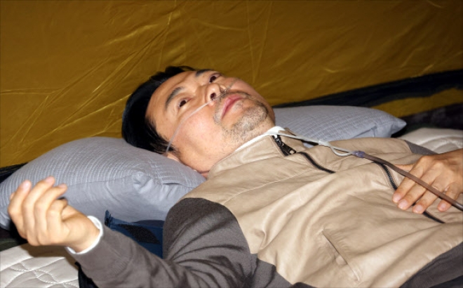 ‘단식 7일째’ 산소 발생기